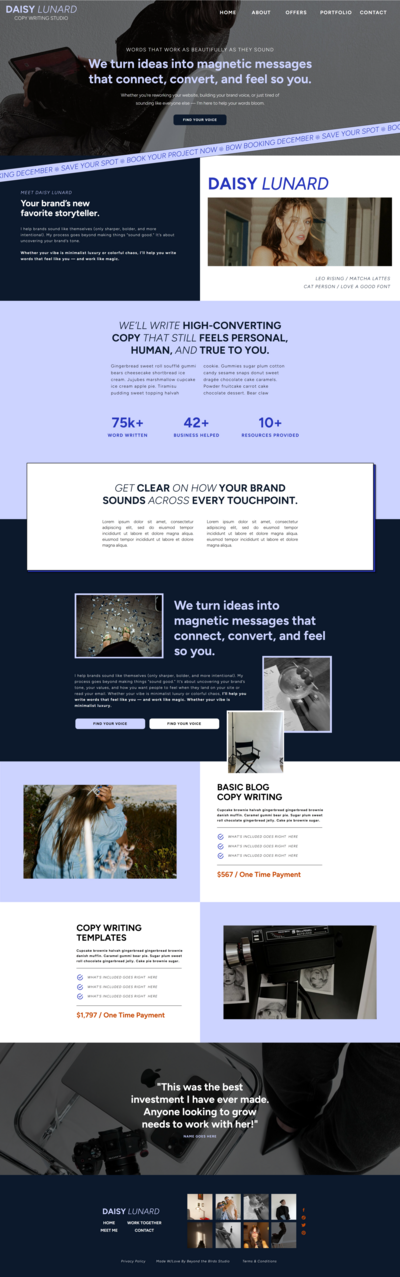 Perfect if you need a bold, personality-packed home base fast — whether that’s a long-form homepage, a sales page for your new offer, or a single-page site to get you up and running.